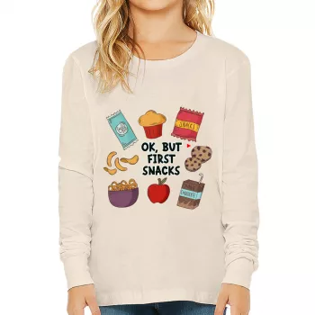 Snacks Kids’ Long Sleeve T-Shirt – Graphic T-Shirt – Kawaii Long Sleeve Tee